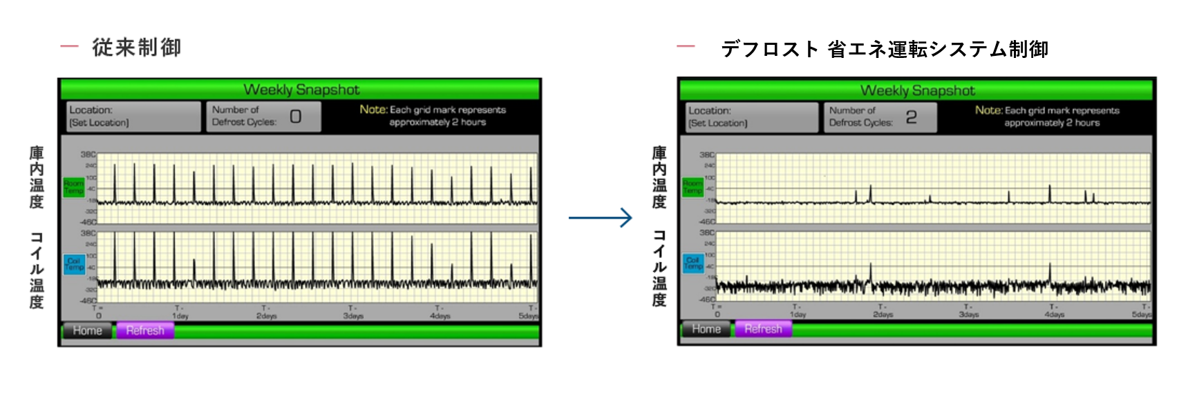 しかし、上記の画像をご覧いただくと、霜取りが週2回程まで減少していることが分かります。